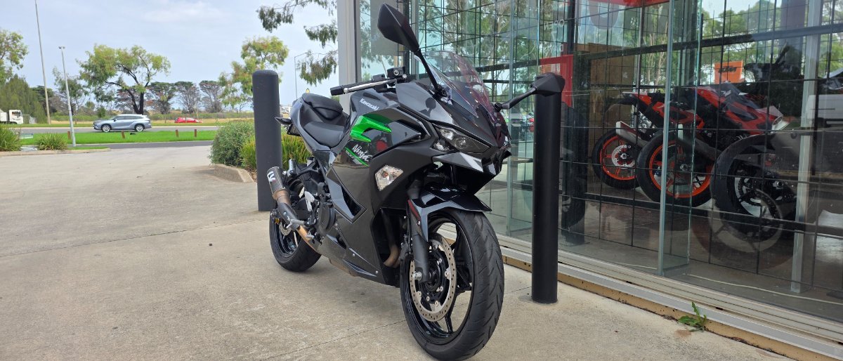 Make Your Statement with this 2025 Ninja 500 model sportbike in grey. Turn heads with the aggressive styling sportbikes are known for and set the tone with a 451 cc twin-cylinder engine. Experience legendary Ninja performance on the sportbike designed to lead the crowd. This bike is fitted with an amazing sounding Leo Vince exhaust and a tail tidy for the sleek look. Enquire now!^With the option to add a 3 year mechanical protection plan and the most competitive finance and insurance packages available, as Australia's largest motorcycle retailer no one makes it easier to purchase a Learner Approved Motorcycle. Plus we can organise to have your bike delivered directly to your door anywhere in Australia through our dedicated motorcycle freighters. This Approved Used Bike comes with a 49-Point Quality Inspection, 2-Day FREE Exchange and ensuring peace of mind, ease & convenience. An Approved Used Bike is the best choice in Australia for your next bike. Why buy elsewhere?